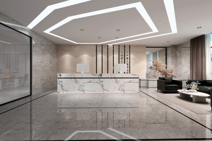该办公楼装修项目总面积达到3000平,本案从整体设计来看,恢弘大气,功能齐全,布局严谨;从装饰主材上看,本案大量使用了大理石饰材,质感鲜明,效果突出,给人以高端大气之感;从风格上来讲,本案是典型的现代简约风办公室设计风格,现代气息浓厚。左图是进门大厅设计,顶面多边型发光软膜设计具有时尚设计感;墙面与地面都是大理石铺设,...