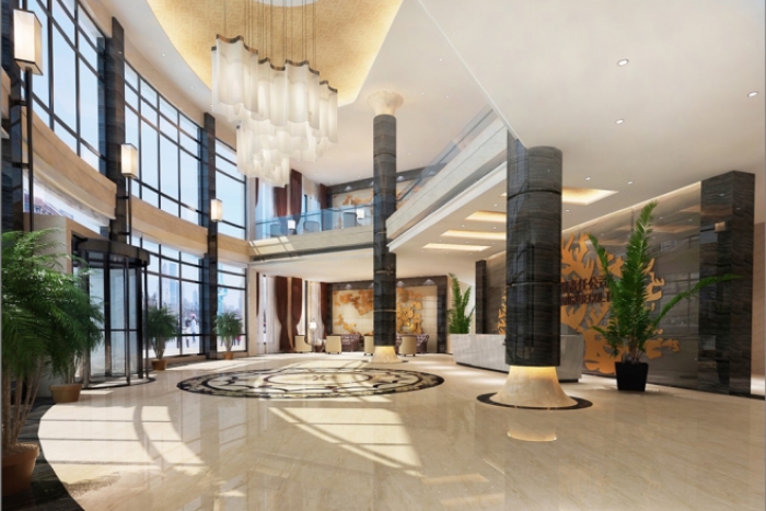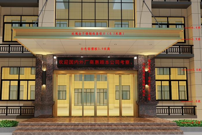 本案从整体设计来看,恢弘大气,功能齐全,布局严谨;从装饰主材上看,本案大量使用了大理石饰材,质感鲜明,效果突出,给人以高端大气之感;从风格上来讲,本案是典型的现代办公室设计风格。 该案例的一楼大厅入口,左右两边的石材包柱,顶面白色铝塑板,不锈钢包边钢化玻璃门,展现企业积极向上的精神风貌