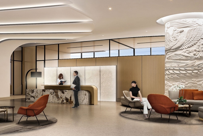 整个办公空间的设计以高档、奢华新中式为主要风格,新中式是为了突破古典中式的沉闷感而衍生的,它结合了现代的大理石,也更追求舒服耐用。在保留古色古香的栅格元素的同时,也更加强调灯光的运用,以及家具的柔软度,给人一种恰到好处的温和感。